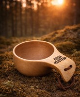 Träkåsa med lädersnodd tillverkad av gummiträ.